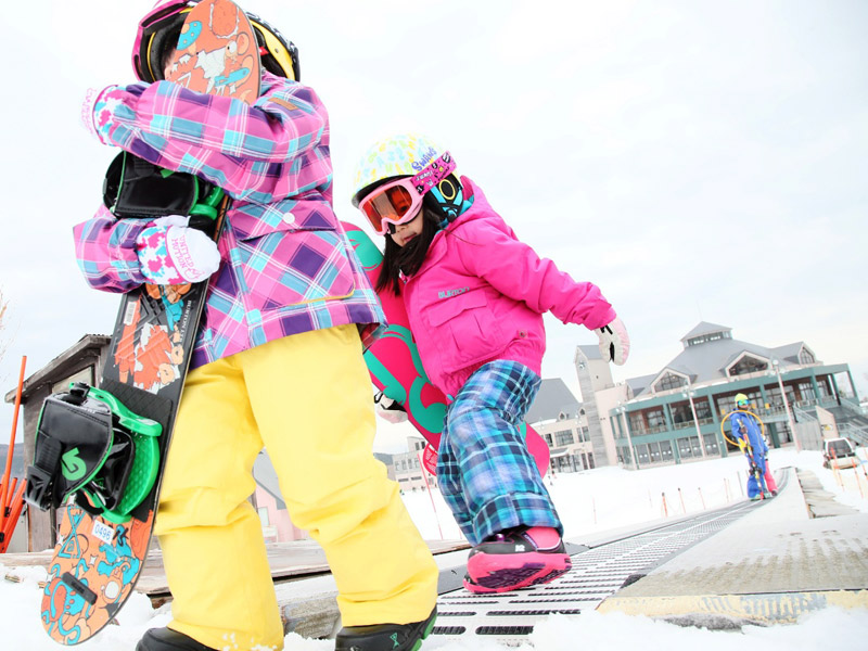 ほとんどのスキー場では、安心して雪遊びさせることのできる子供専用のエリアや、初めて滑る子供向きゲレンデを用意しています。スキー場によっては、ムービングベルト、スノーエスカレーターなどと呼ばれる、歩かずに斜面を安全に登れる器具を設置している場合もあります。