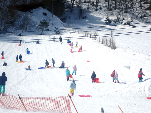 見通しの良いなだらかな1枚バーンのゲレンデだからこどものスキーデビュー、ソリや雪遊びに最適なローカル・ファミリーゲレンデ