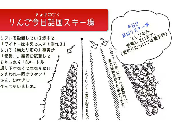 高速IC、IC併設の道の駅から1分余り。来場者はソリ・チューブ遊び、雪だるま・かまくら・雪像造りなどの雪遊び目的のファミリーが中心(入場料500円)。