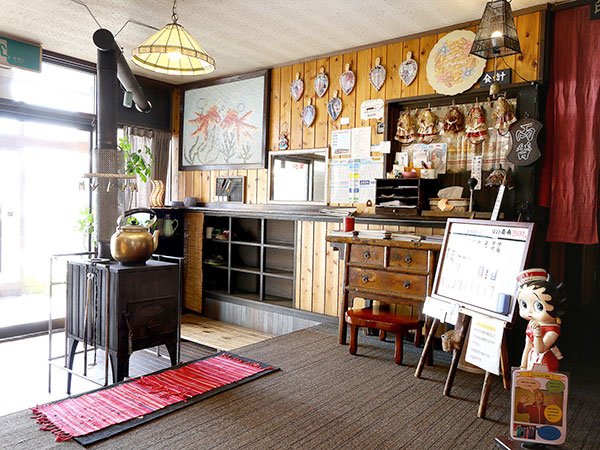 ダイナランドへシャトルバス10分。館内はにご主人の趣味のマンガとお母さんの趣味のレトログッズが溢れる、どこか懐かしく心温まる気楽に泊まれる宿